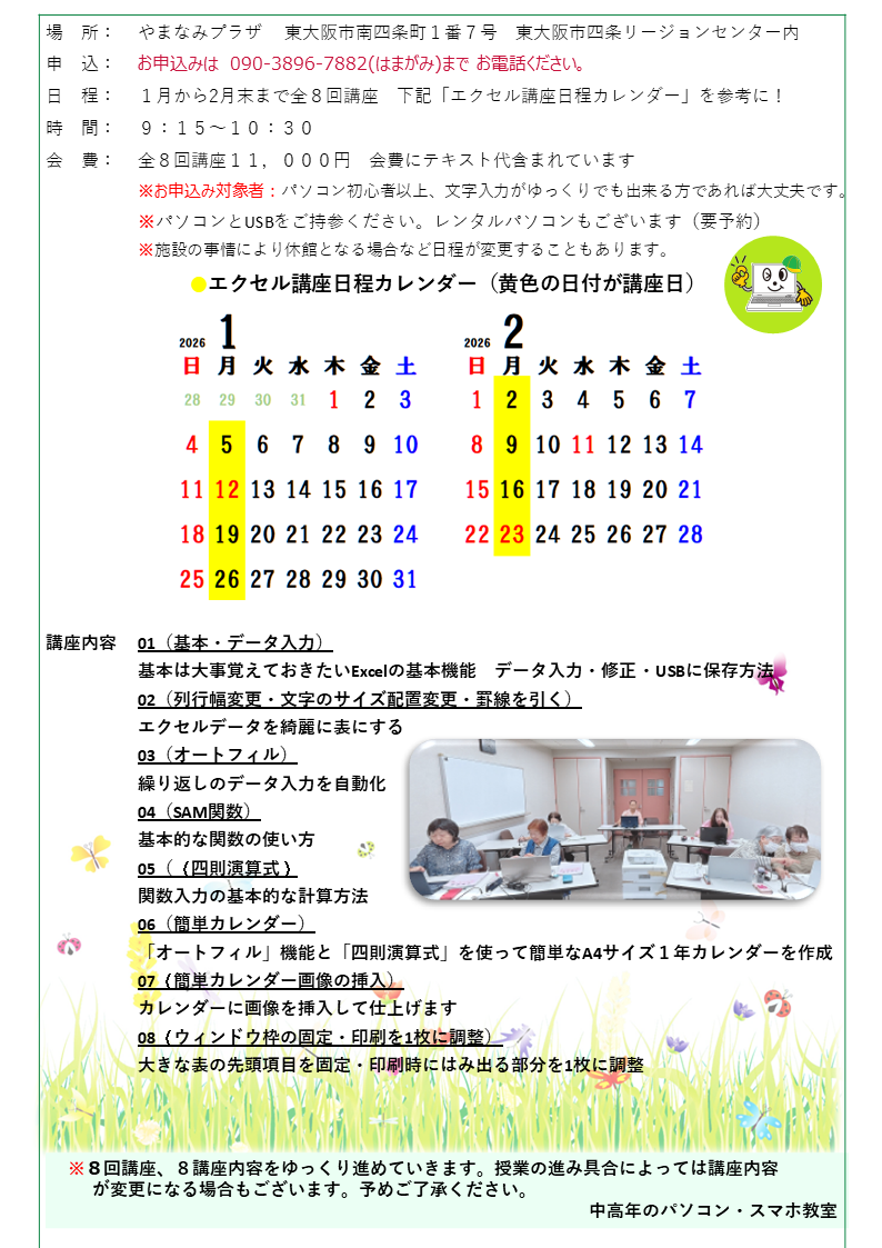 月1回パソコンインターネット講座のご案内です!講座予定・年間日程をご確認いただけます